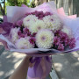 Букет из пионовидных роз, альстромерии и хризантем